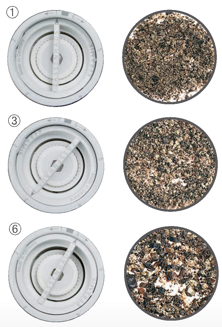 • PERFEKTES MAHLERGEBNIS – Stufenlos einstellbar mit 6 vorgegebenen Positionen, von pulverfein (1) bis gross gemörsert (6). Praktisch ablesbar an der Ring-Skala unten am Keramikmahlwerk