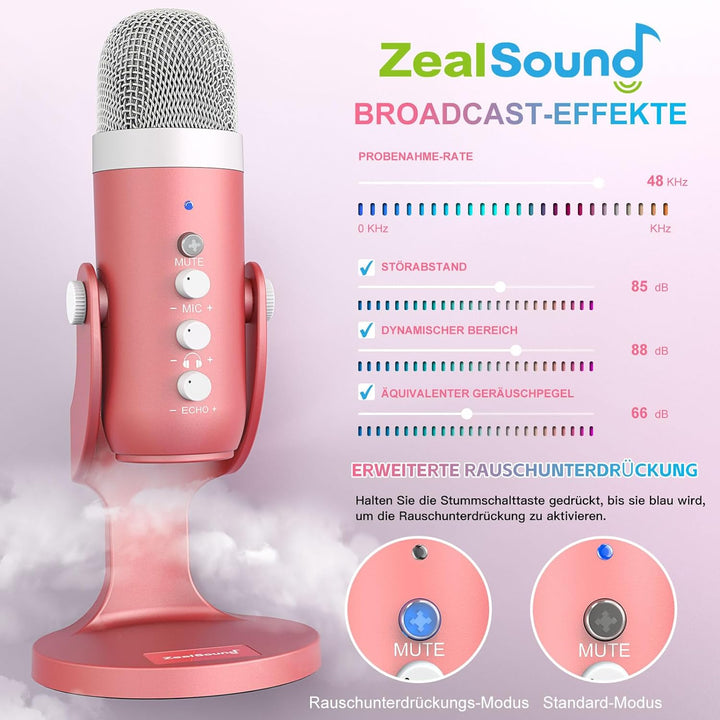 - 【für mehrere Geräte】USB-A kabel(Länge 1,8 m), Adapter für iPhone, USB-C-Adapter (Lieferinhalt); Das k66 Rosa USB-Mikrofon ist kompatibel mit iphone 6 und höher,iPad 4 und höher; Dieses Kondensator-Desktop-Mikrofon ist geeignet für Mac, PS4 und
