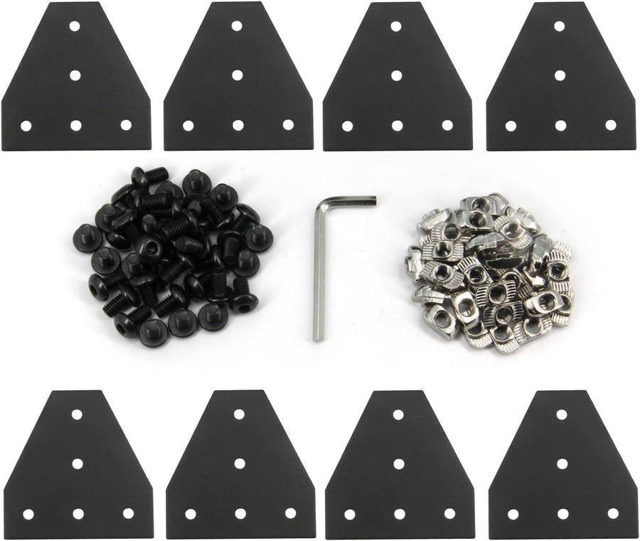 - Paket-Inhalt: 8 Stück schwarze 3030 Serie T Form Eckklammern mit 40 Stück M6x10mm Schraube und 40 Stück M6 T-Mutter und 1 Stück Inbusschlüssel