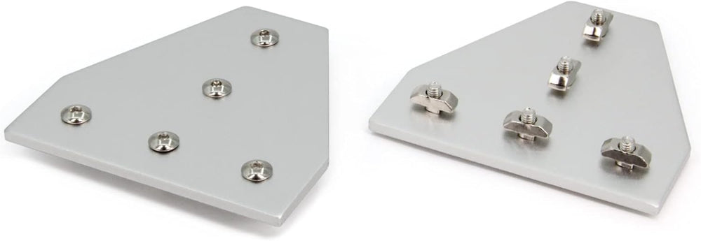 - Jede Halterungsplatte nimmt 5-Loch-Design mit M6-Schrauben an, fest und nicht lose, starre Verbindung, verwendet, um Stücke der 40mm Aluminiumverdrängung in einem 90-Grad-Winkel zu verbinden