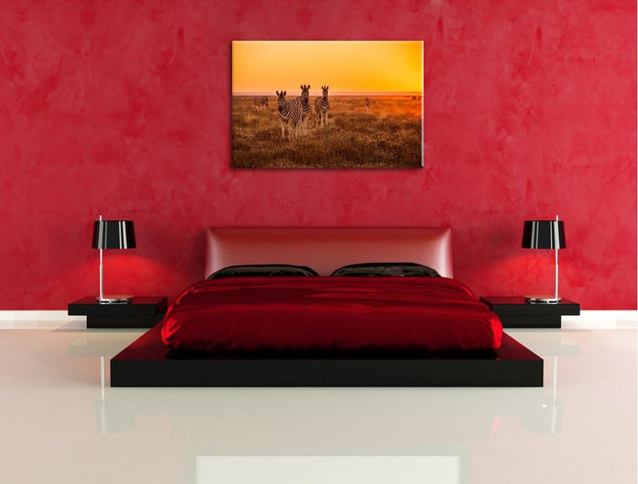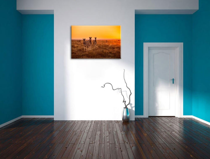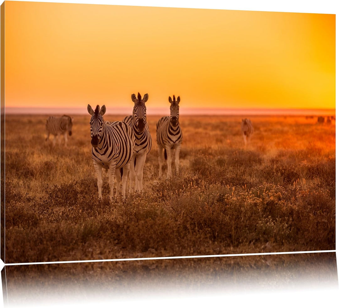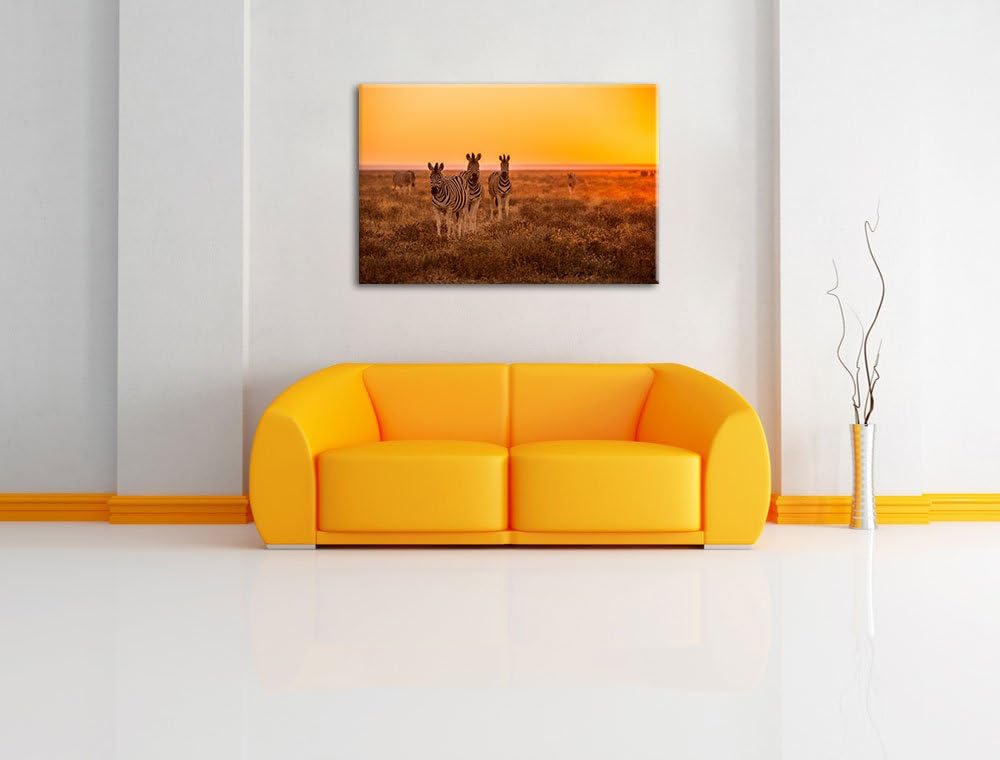 Zebra in der Savanne Format: 100x70 auf Leinwand, XXL riesige Bilder fertig gerahmt mit Keilrahmen,