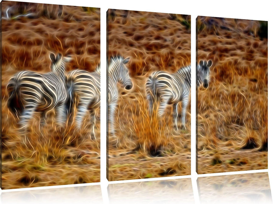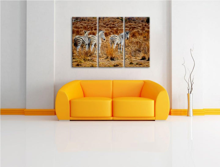 Zebraherde im Wildgras Spezial 3-Teiler Leinwandbild 120x80 Bild auf Leinwand, XXL riesige Bilder fe