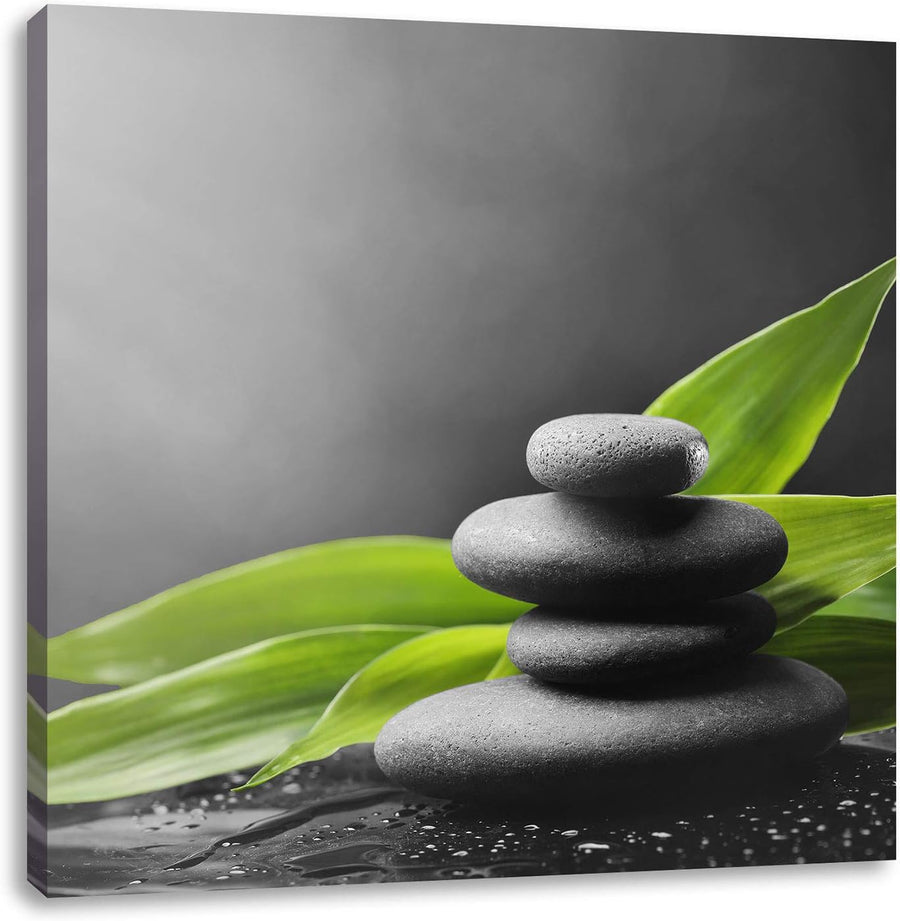 Zen Steinturm schwarz/weiss, Format: 70x70 auf Leinwand, XXL riesige Bilder fertig gerahmt mit Keilr