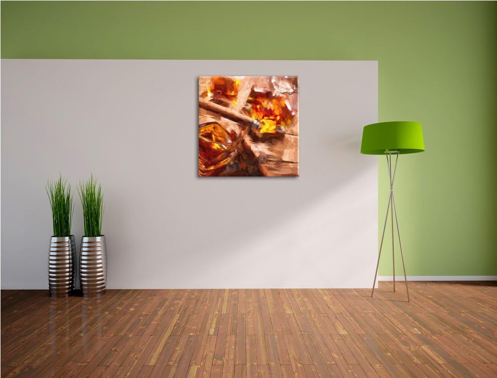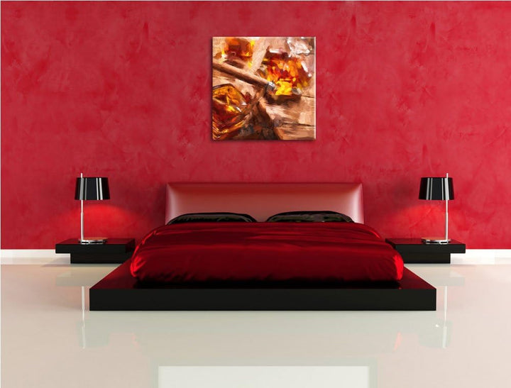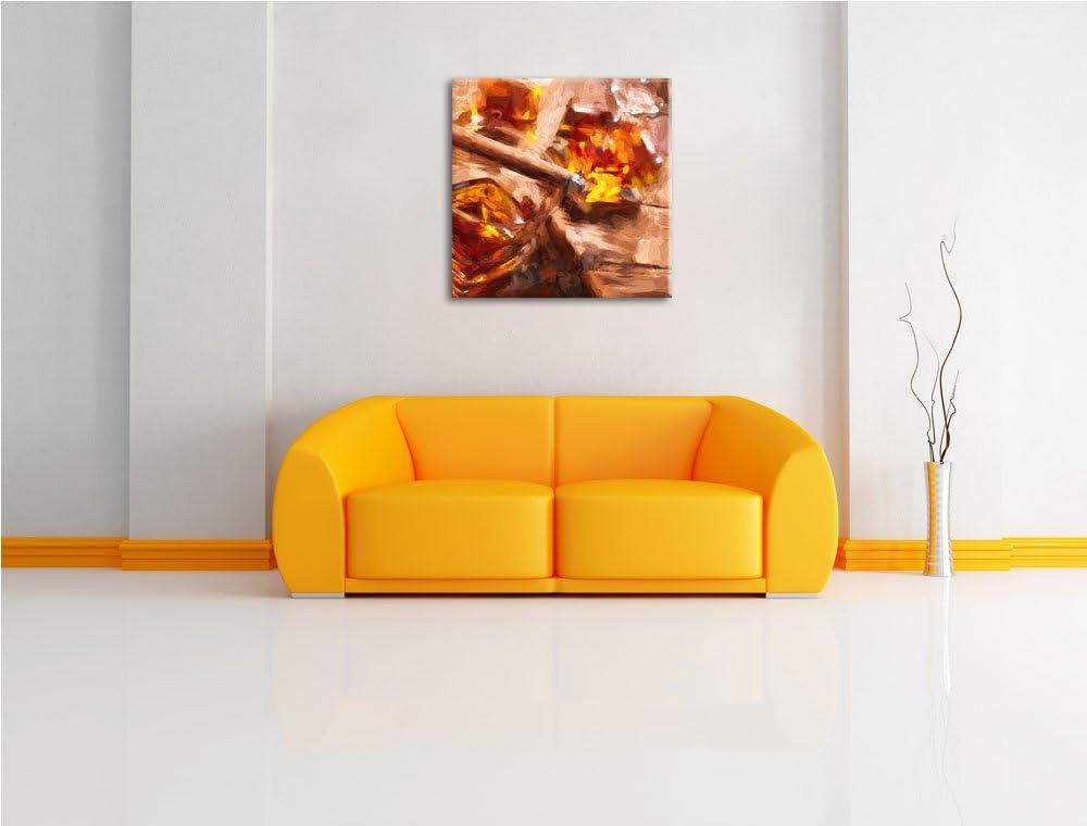 Zigarre auf Whiskeyglas, Format: 70x70 auf Leinwand, XXL riesige Bilder fertig gerahmt mit Keilrahme