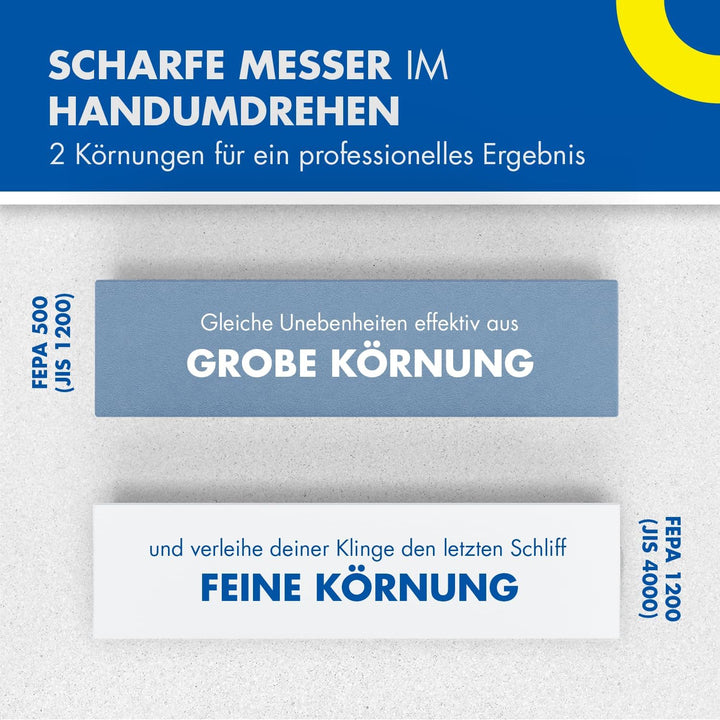 - KOMBISTEIN 2 IN 1 – Zwei Körnungen sorgen für präzise Ergebnisse. Küchenmesser, Werkzeuge und mehr lassen sich hervorragend mit dem Wetzstein vorschleifen und schärfen | inkl. Schärfanleitung
