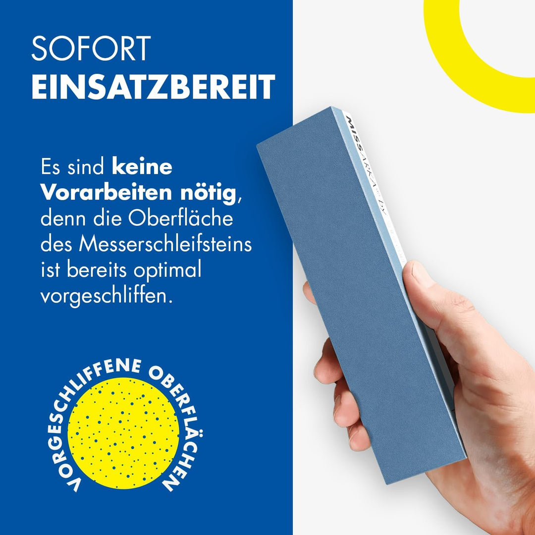 - SOFORT EINSATZBEREIT – Dank der vorgeschliffenen Oberfläche sofort einsatzbereit. Die Kanten vom extra grossen Wasserstein sind gefast, wodurch das Schleifen erleichtert und die Messerschneide nicht verletzt wird