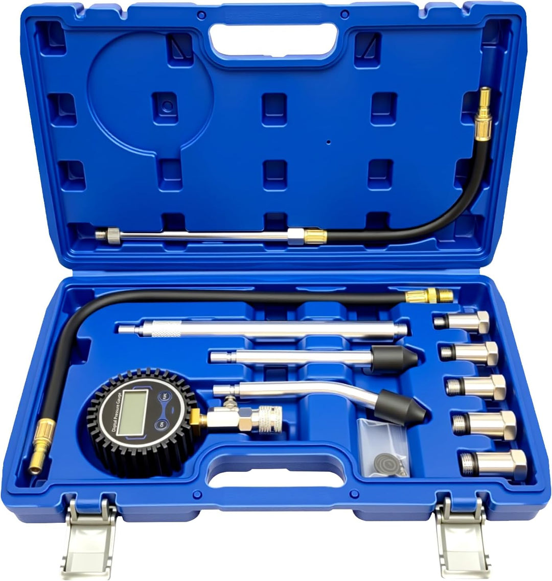 - 【Präzise Messungen】Digitales Kompressionsmessgerät mit einer unglaublichen Anzeigeresolution 0,5 innerhalb von 1% des präzisen Drucks von 10-250 PSI, für schnelle & genaue Überprüfung der kompression von Benzinmotoren.