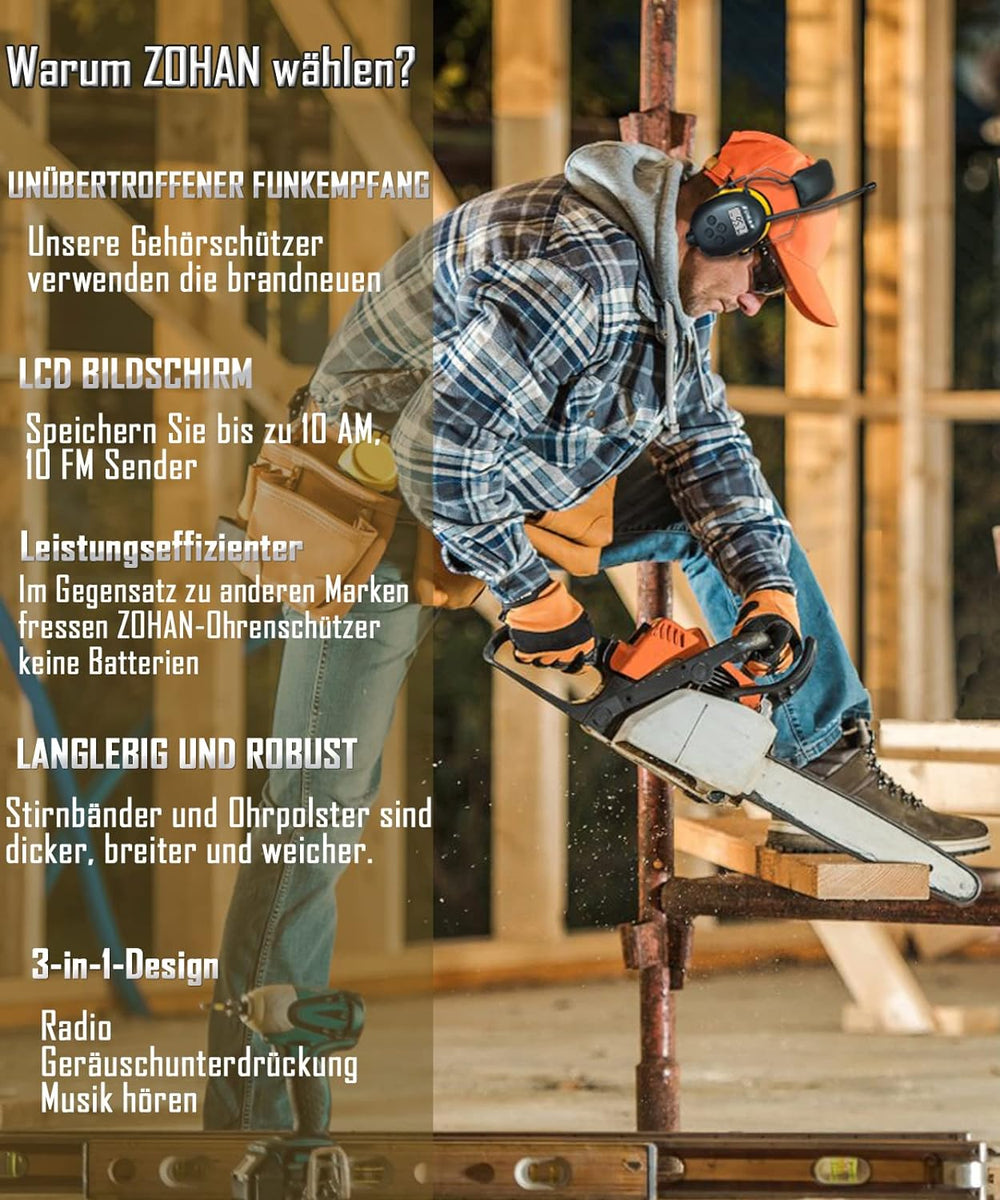 - ★ 【Arbeitsassistent】Unterstützt AM / FM-Signalempfang ►SNR 30dB / NRR 25dB sanfte Rauschunterdrückung, schützt Ihr Gehör ►Digitales LCD-Display mit Radio, um die Anforderungen von Arbeit und Unterhaltung in Gebäuden, Fabriken, Wäldern,