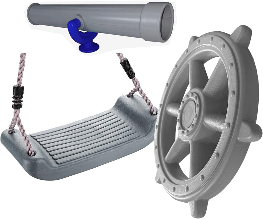 - Zubehörset für Ihren Spielturm: Schaukelbrett + Piratenlenkrad für Abenteurer + 1 Fernrohr