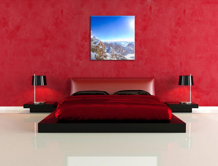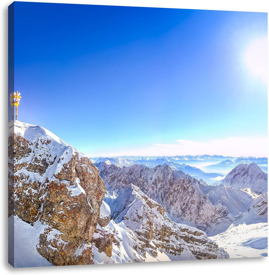 Zugspitze im Sonnenlicht, Format: 70x70 auf Leinwand, XXL riesige Bilder fertig gerahmt mit Keilrahm