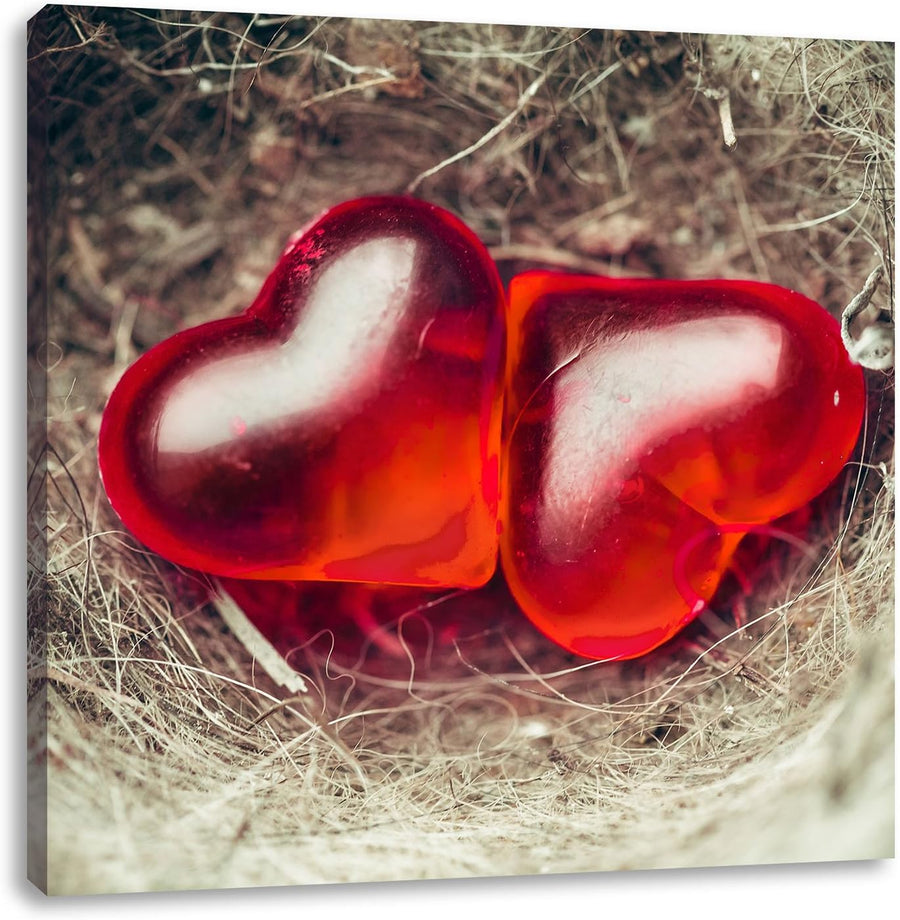 Pixxprint Zwei Herzen, Format: 70x70 auf Leinwand, XXL riesige Bilder fertig gerahmt mit Keilrahmen,