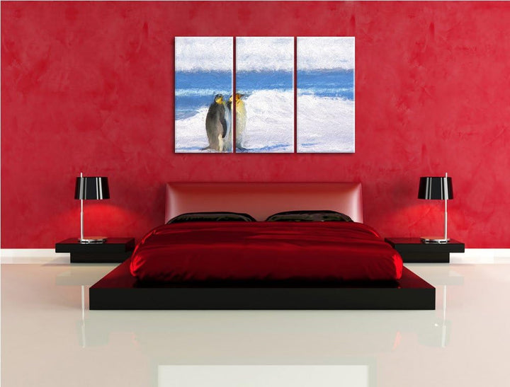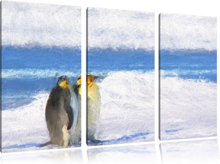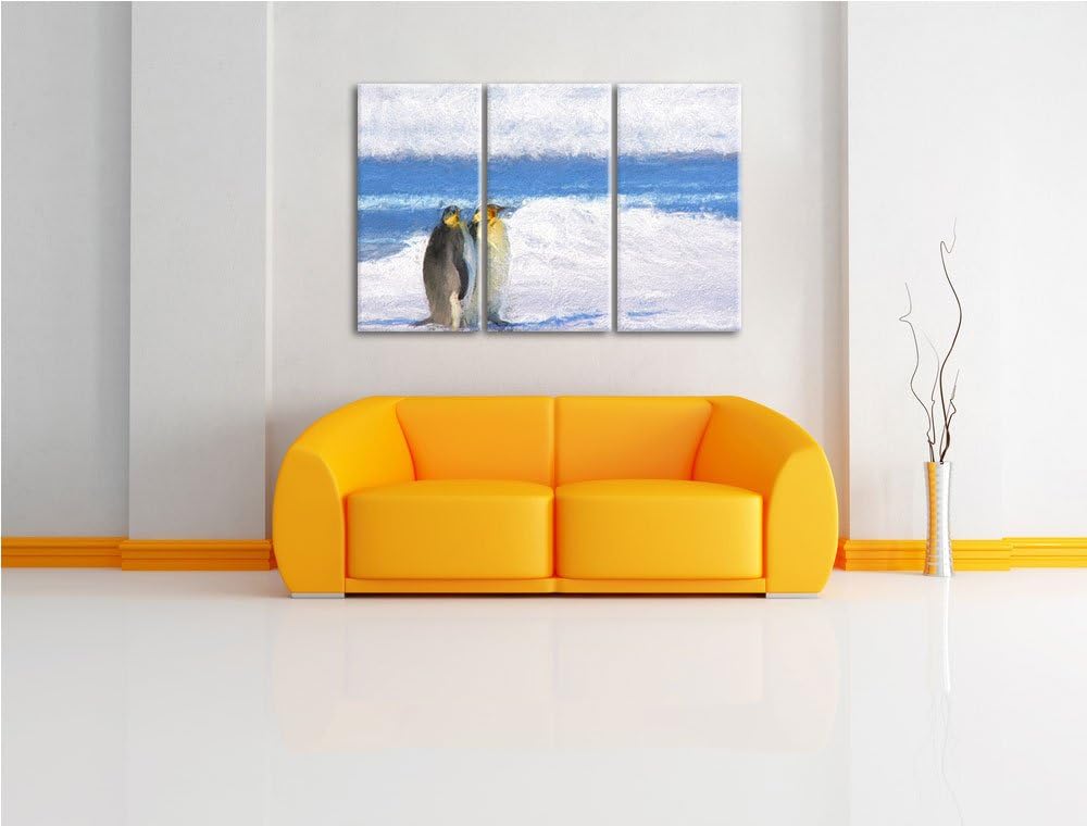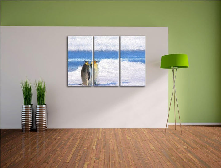 zwei Kaiserpinguine auf Eisscholle NewArt 3-Teiler Leinwandbild 120x80 Bild auf Leinwand, XXL riesig