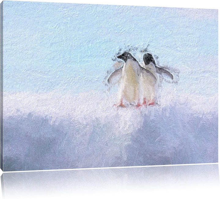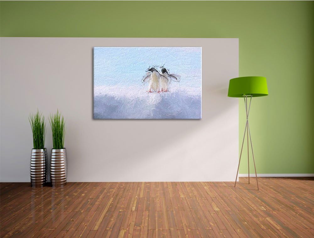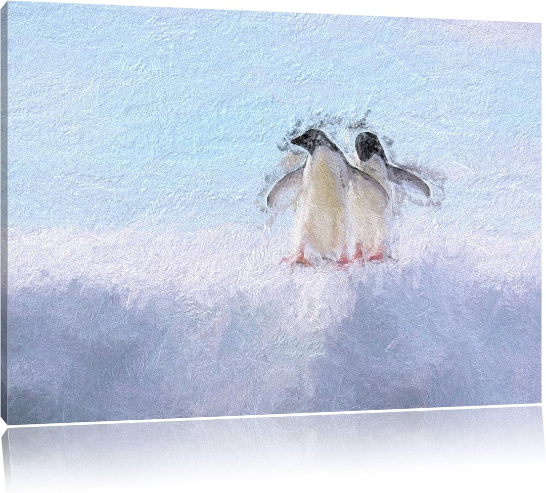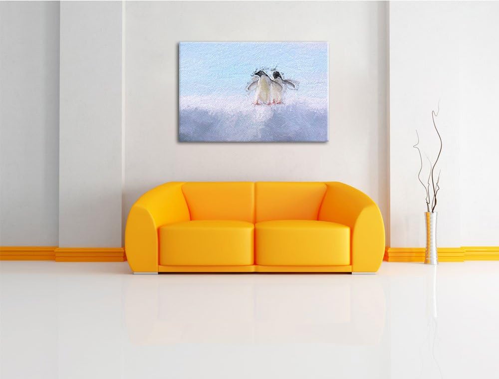 zwei kleine Adeliepinguine auf Eisscholle Deluxe Format: 100x70 cm auf Leinwand, XXL riesige Bilder