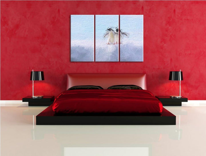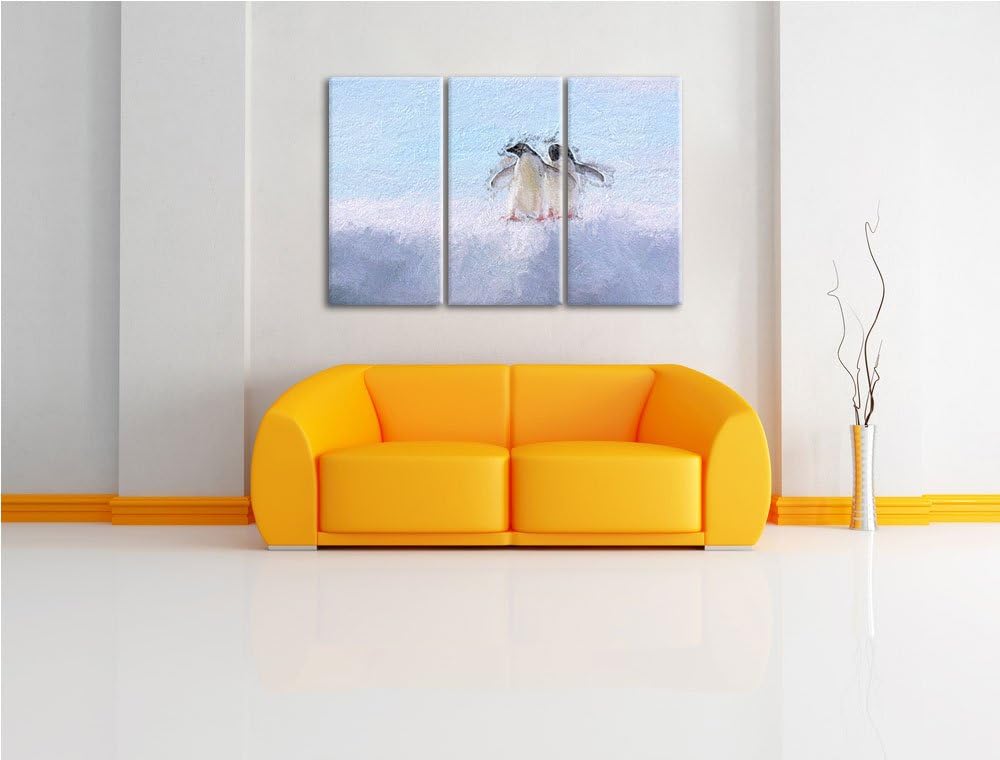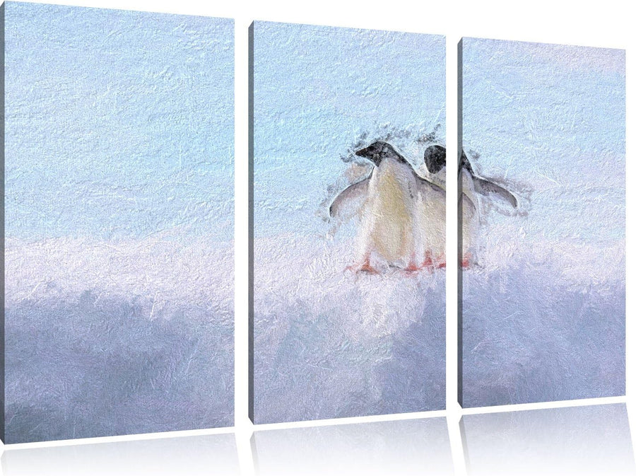 zwei kleine Adeliepinguine auf Eisscholle NewArt 3-Teiler Leinwandbild 120x80 Bild auf Leinwand, XXL