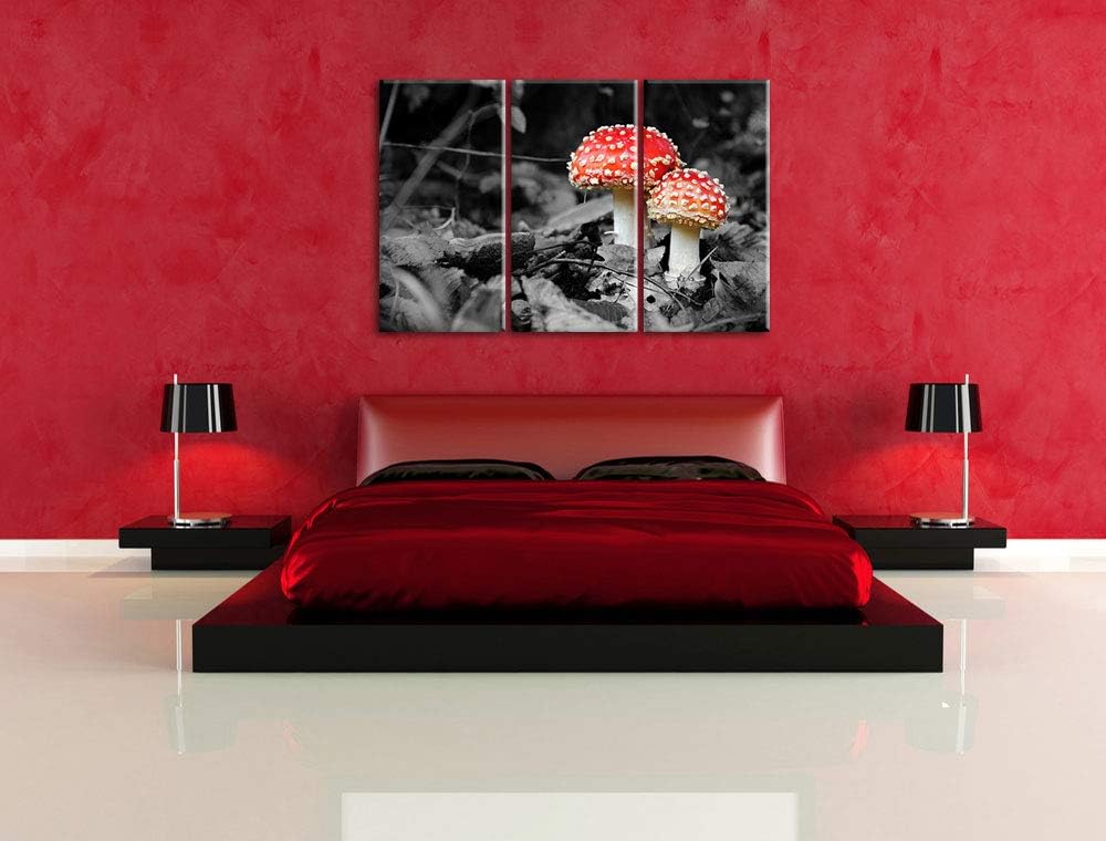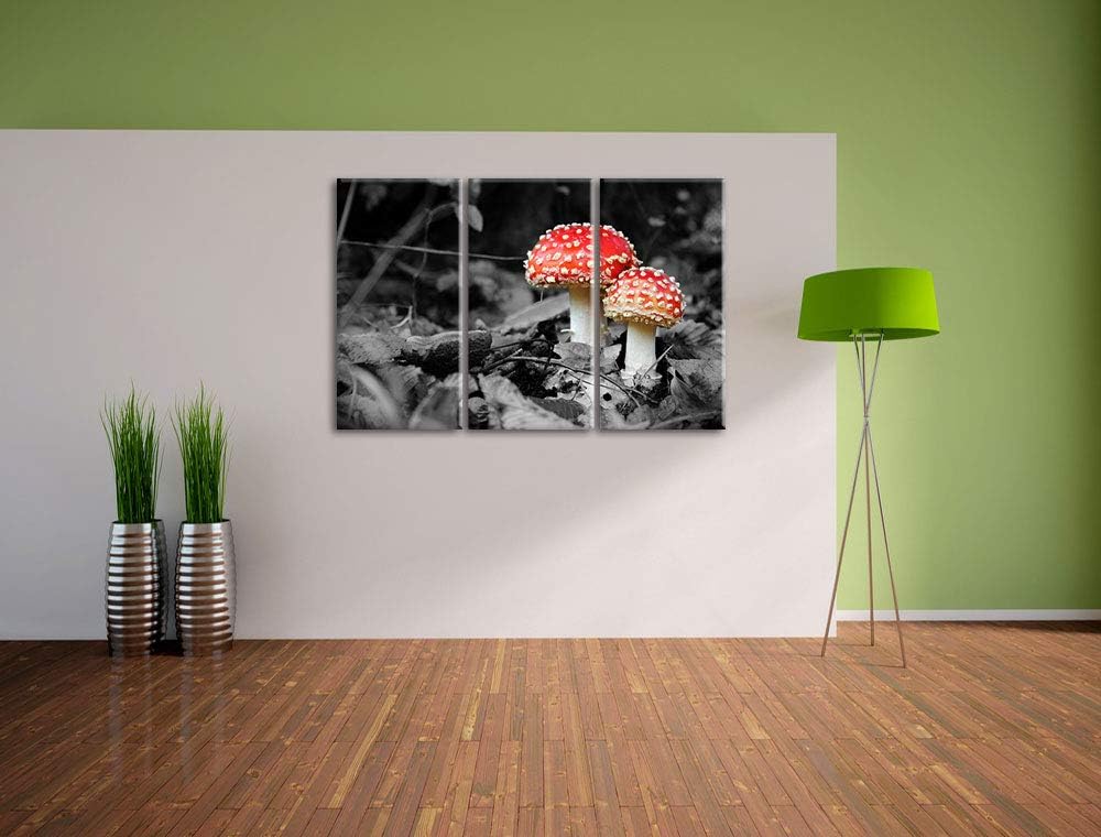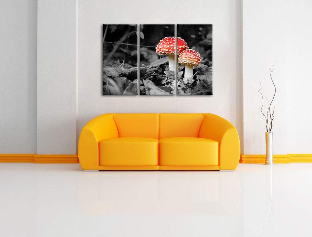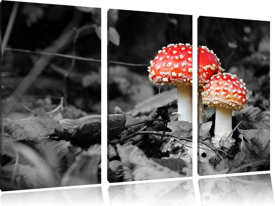 zwei kleine Fliegenpilze im Wald schwarz/weiss 3-Teiler Leinwandbild 120x80 Bild auf Leinwand, XXL r