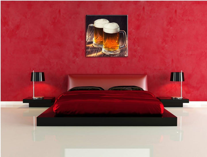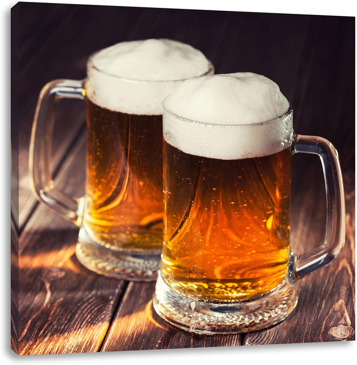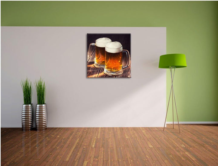 Zwei Masskrüge Bier, Format: 70x70 auf Leinwand, XXL riesige Bilder fertig gerahmt mit Keilrahmen, K