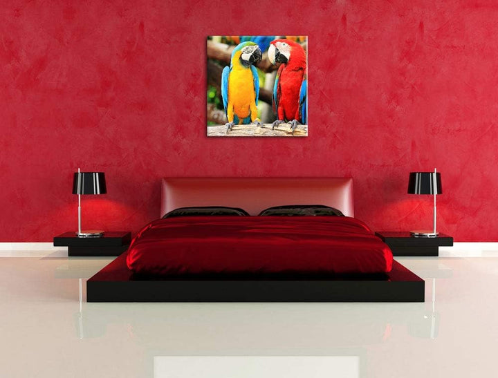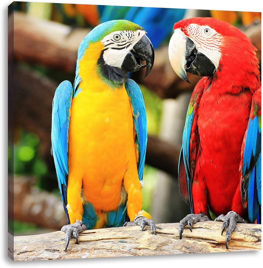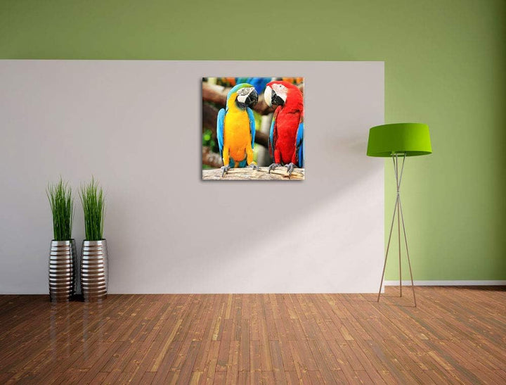 Zwei Papageien auf einem AST, Format: 70x70 auf Leinwand, 70x70