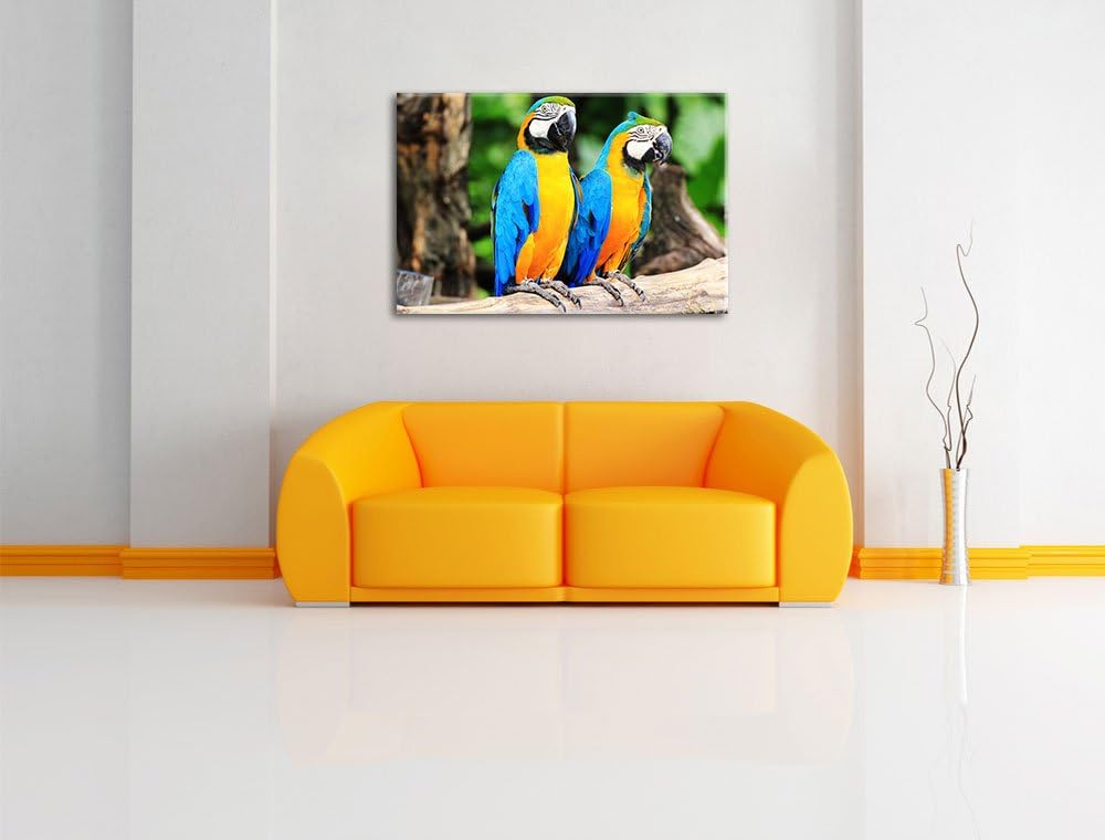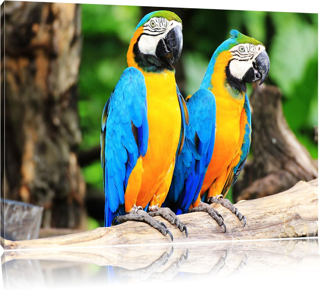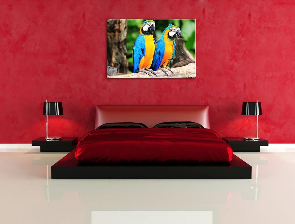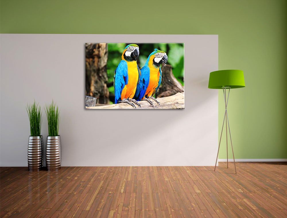Zwei Papageien, Format: 100x70 auf Leinwand, XXL riesige Bilder fertig gerahmt mit Keilrahmen, Kunst