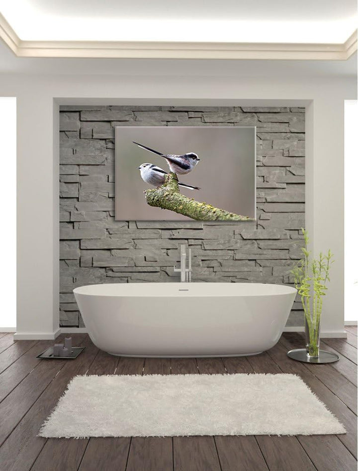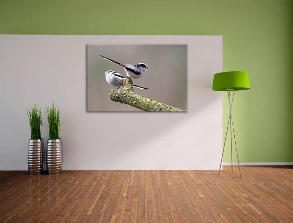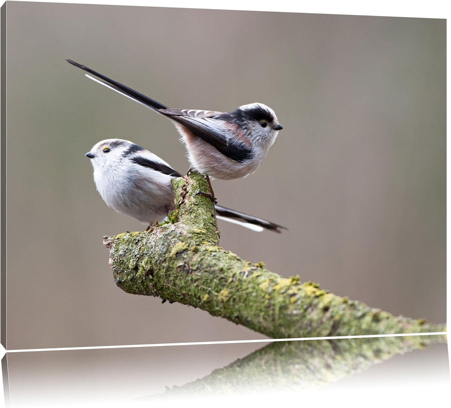 zwei Schwanzmeisen auf einem Ast Leinwand, XXL riesige Bilder fertig gerahmt mit Keilrahmen, Kunstdr