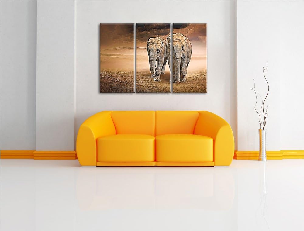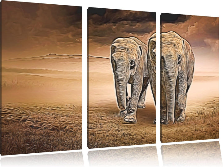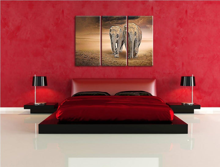 Zwei stolze Elefanten in Steppe Spezial 3-Teiler Leinwandbild 120x80 Bild auf Leinwand, XXL riesige