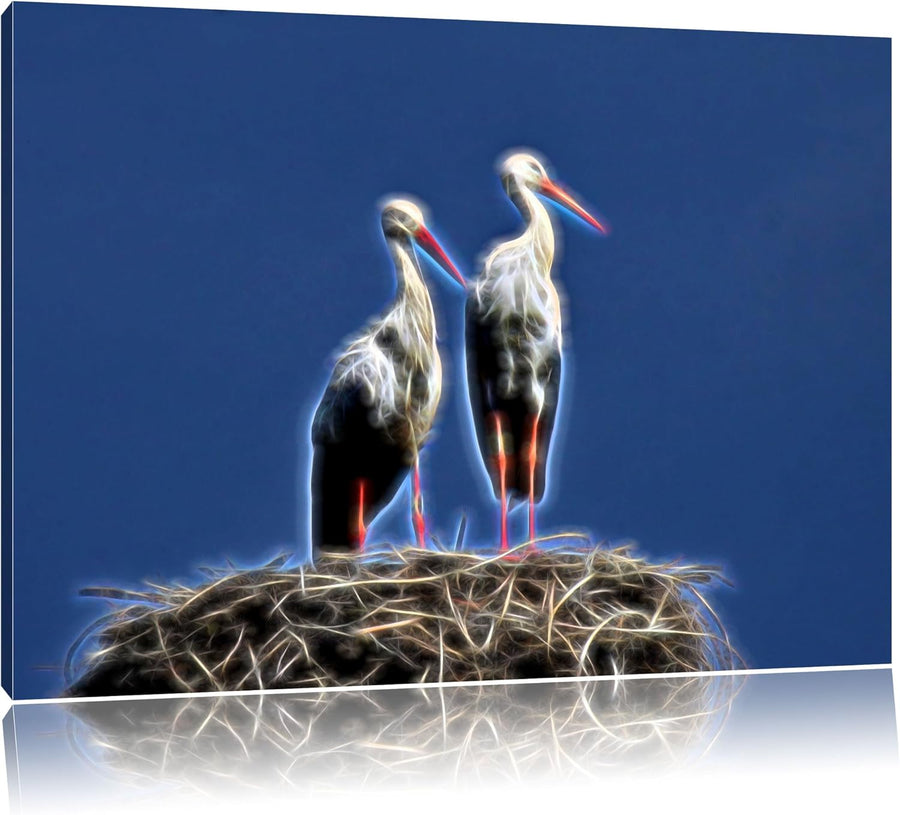 zwei stolze Störche im Nest NewArt Format: 100x70 cm auf Leinwand, XXL riesige Bilder fertig gerahmt