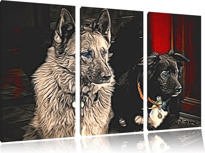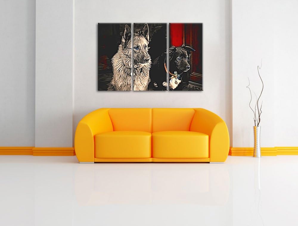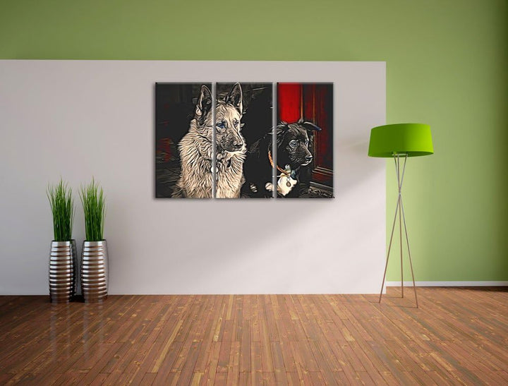 zwei Hunde auf dem Teppich NewArt 3-Teiler Leinwandbild 120x80 Bild auf Leinwand, XXL riesige Bilder