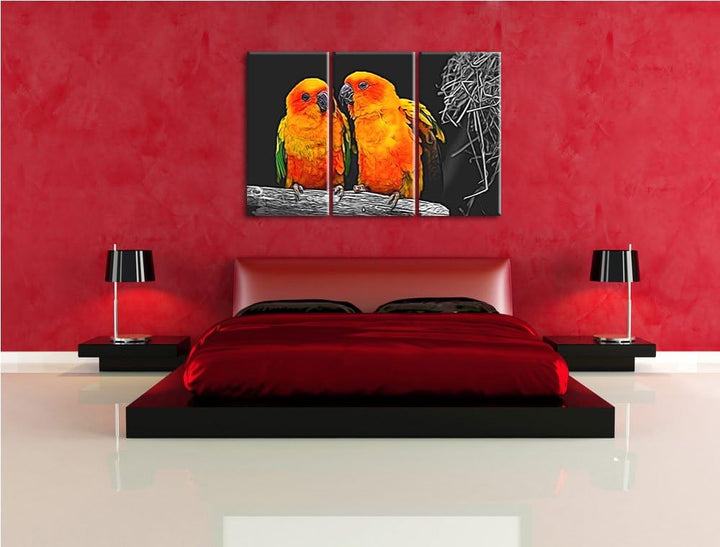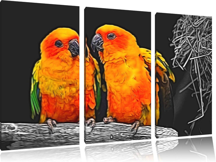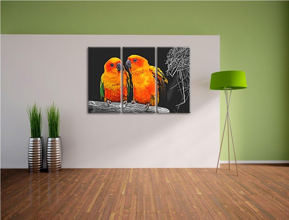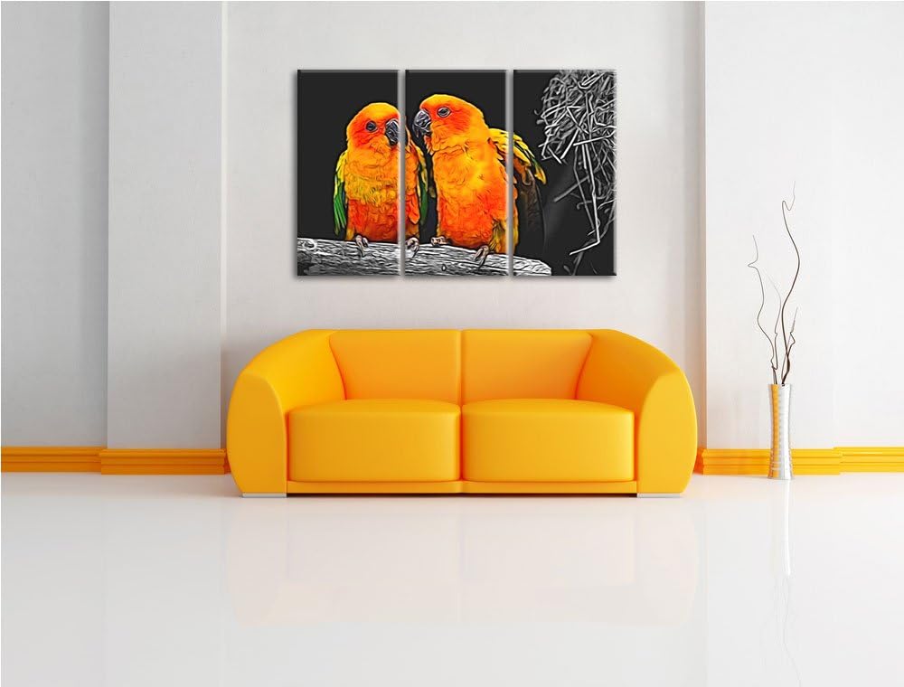 zwei niedliche Sonnensittiche schwarz/weiss Deluxe 3-Teiler Leinwandbild 120x80 Bild auf Leinwand, X