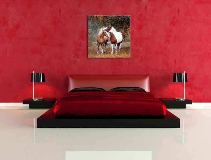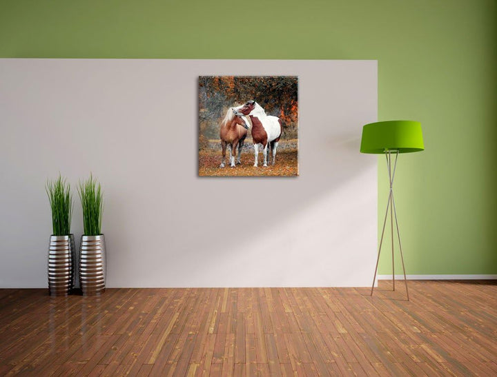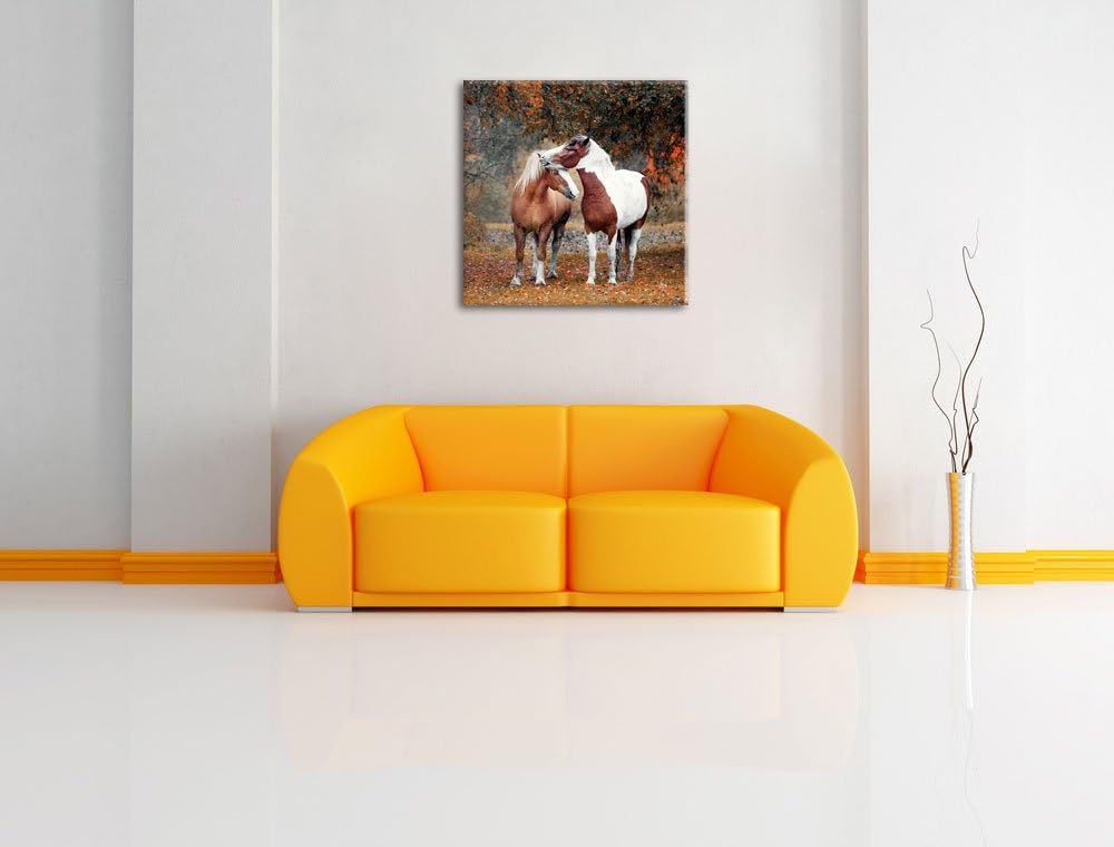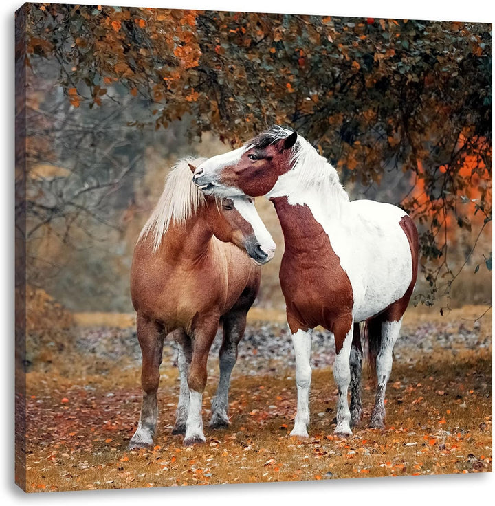 zwei schmusende Pferde, Format: 70x70 auf Leinwand, XXL riesige Bilder fertig gerahmt mit Keilrahmen