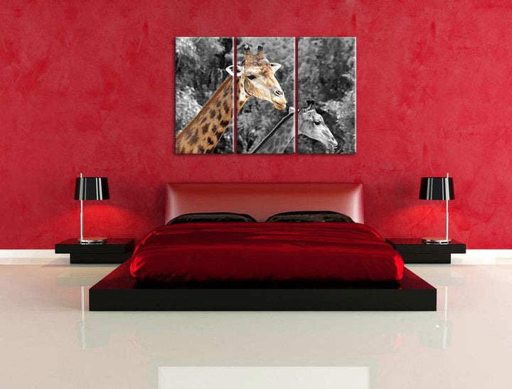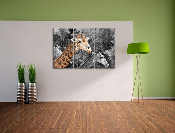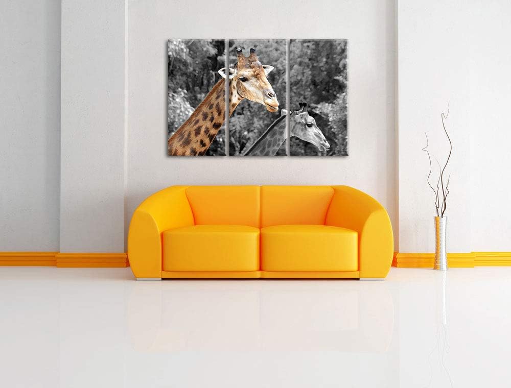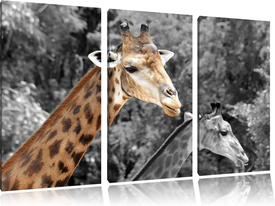 zwei schöne Giraffen schwarz/weiss 3-Teiler Leinwandbild 120x80 Bild auf Leinwand, XXL riesige Bilde
