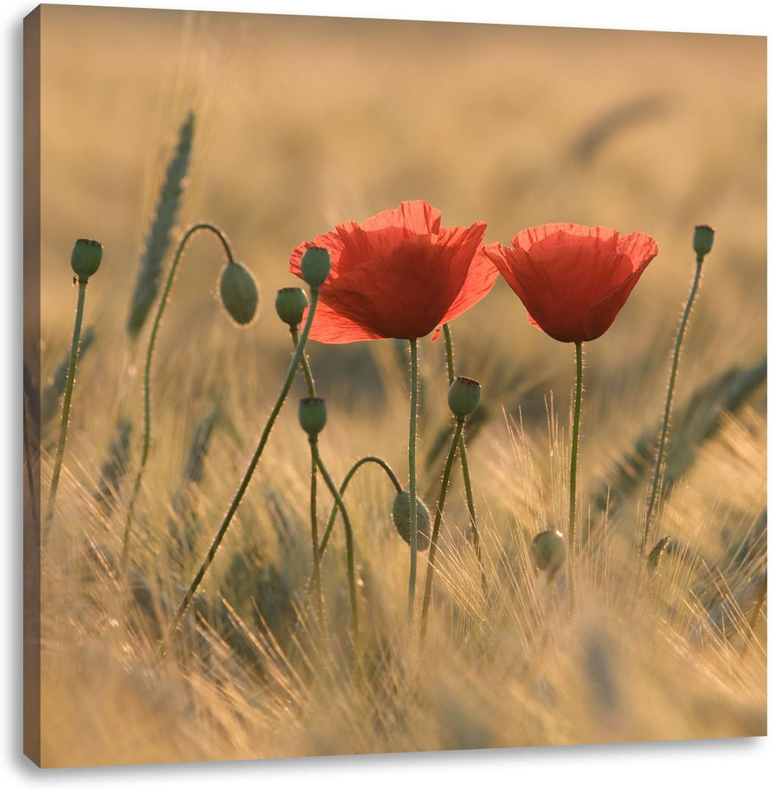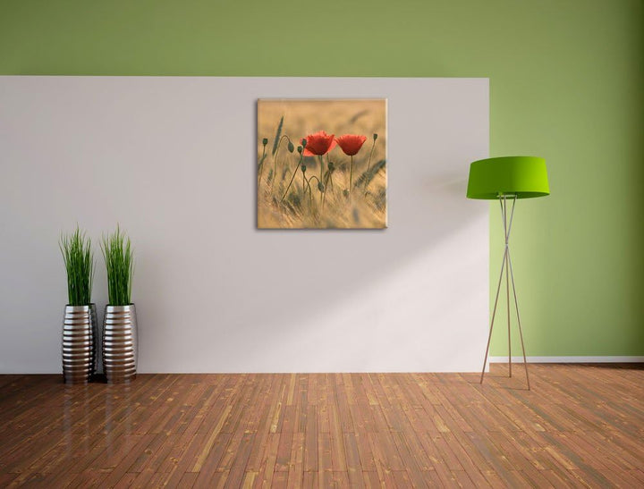 Zwei schöne Mohnblumen, Format: 70x70 auf Leinwand, XXL riesige Bilder fertig gerahmt mit Keilrahmen