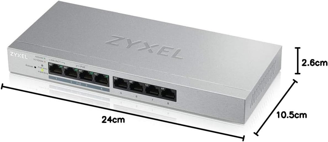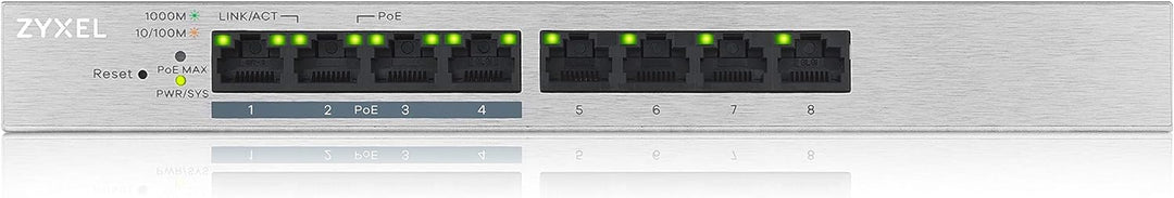 - Der GS1200 Switch verfügt über ein lüfterloses Design. Dies sorgt für einen geräuschlosen Betrieb und für eine höhere Zuverlässigkeit und Lebensdauer.