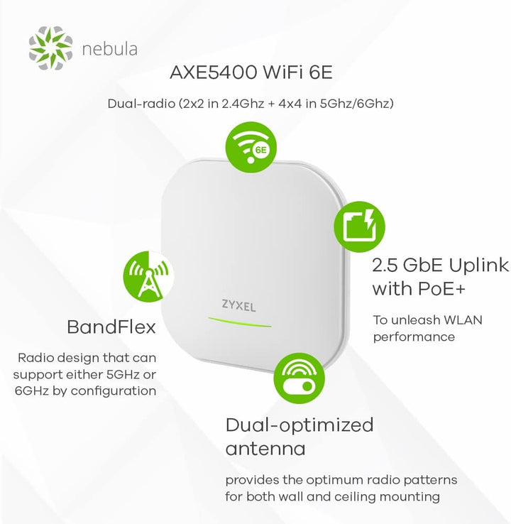 - Zyxel 6E Boost, das die High-Gain-4-Streams in 6 GHz verwendet, hilft, die Reichweite zu vergrössern und die Leistung des neuen Bands zu maximieren