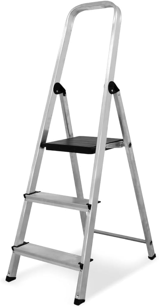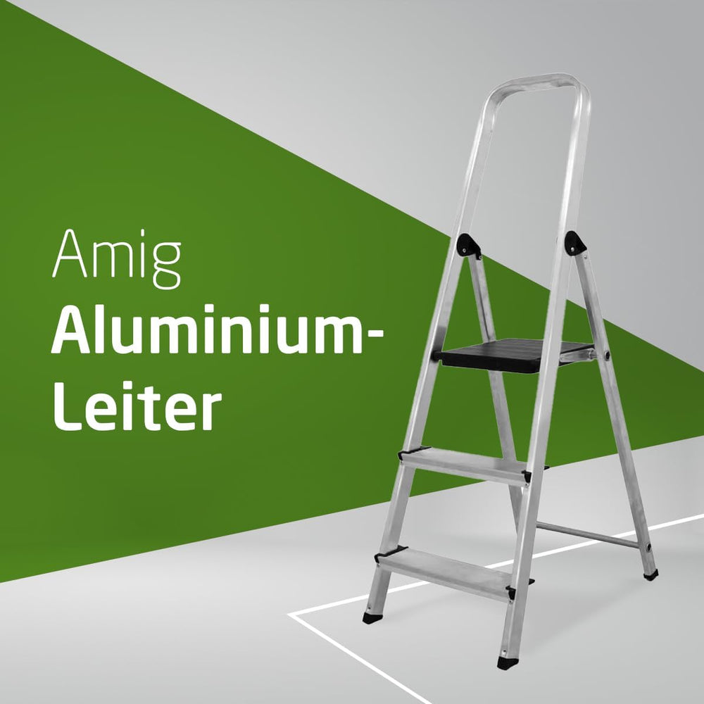 Amig - Klappbare Leiter mit 3 Stufen - Hergestellt aus Aluminium - Masse der kleinen Stufen: 28 cm x