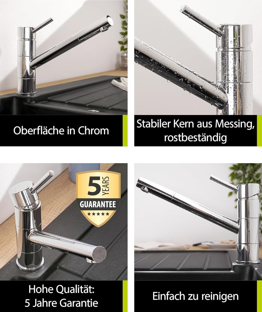 'aquaSu® Basic Küchenarmatur Tiado für Spüle | Spültischarmatur mit ausziehbarer Geschirrbrause | Wa