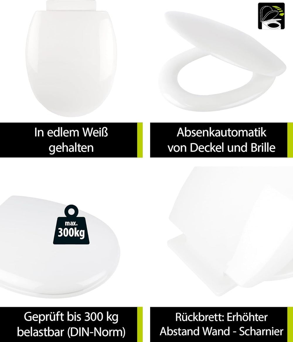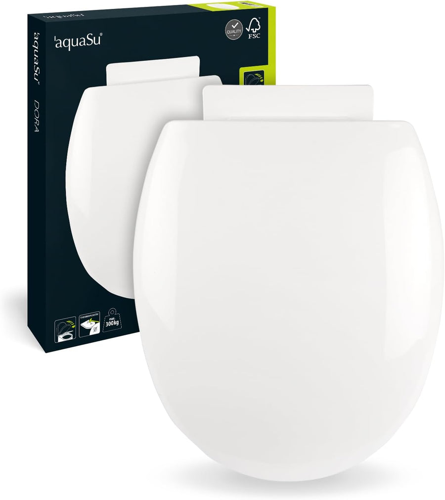 'aquaSu® WC-Sitz mit Absenkautomatik, Dekor Real White, High-Gloss Toilettensitz mit Holzkern, Fast-