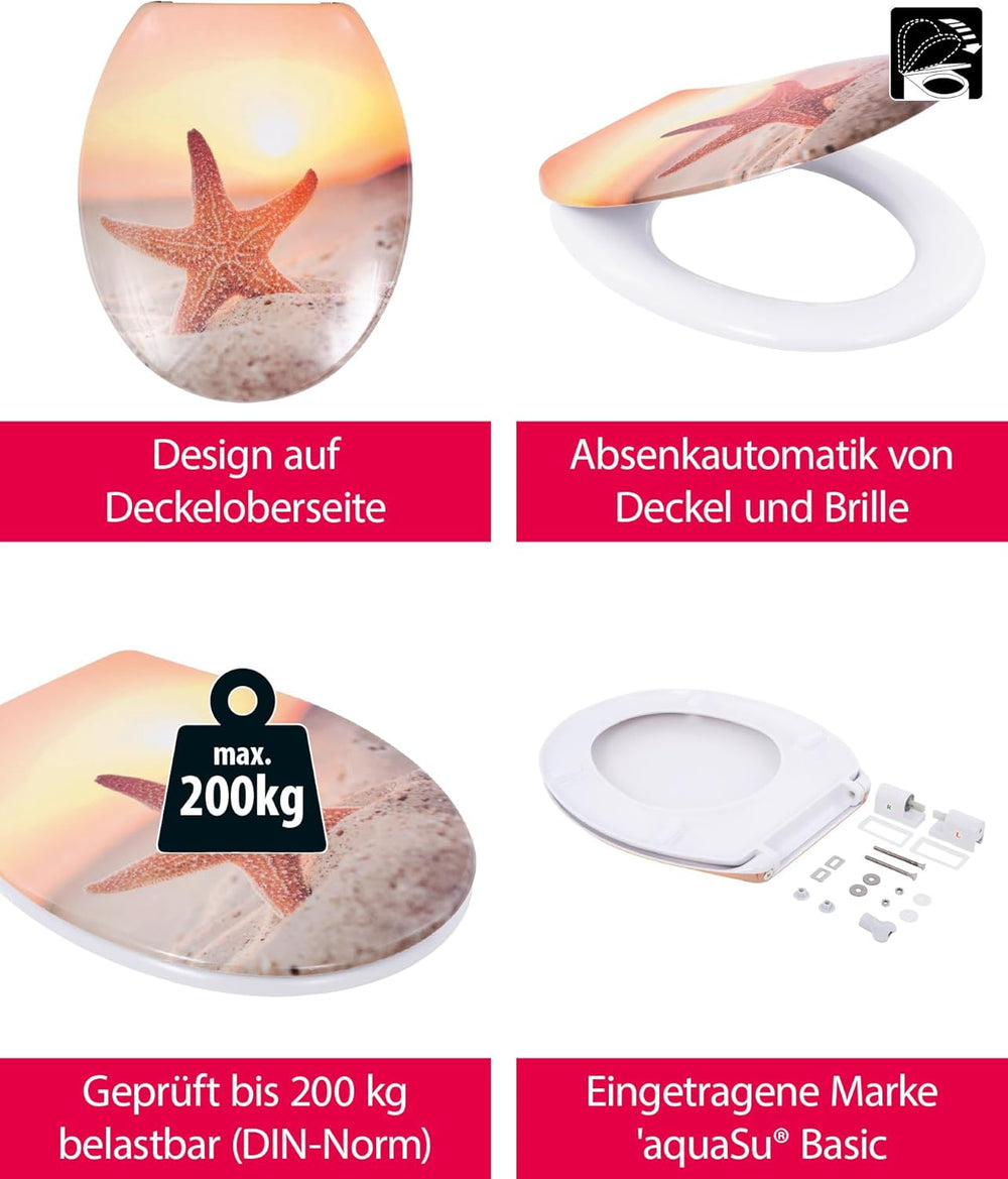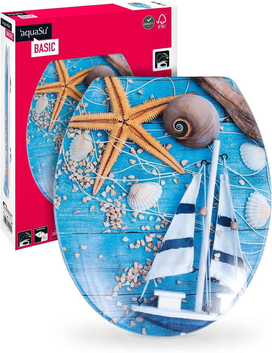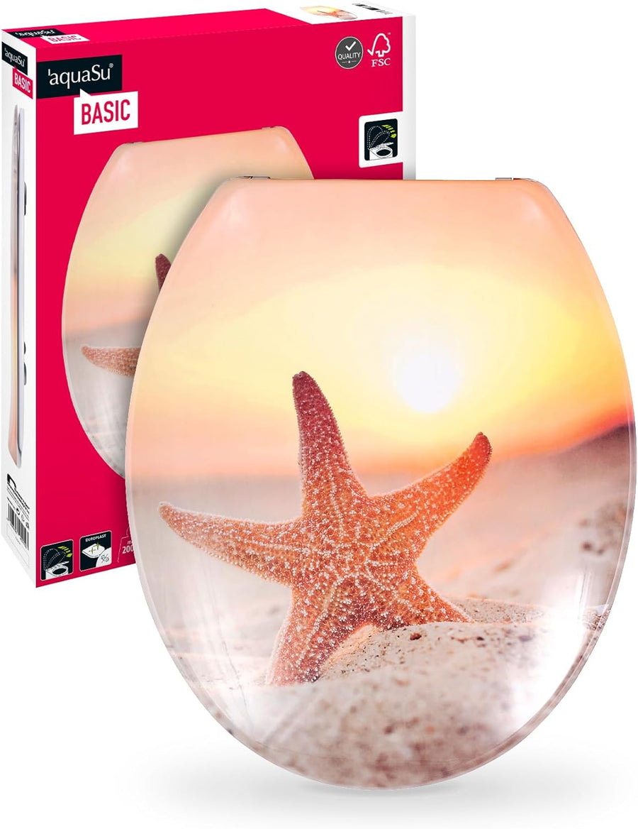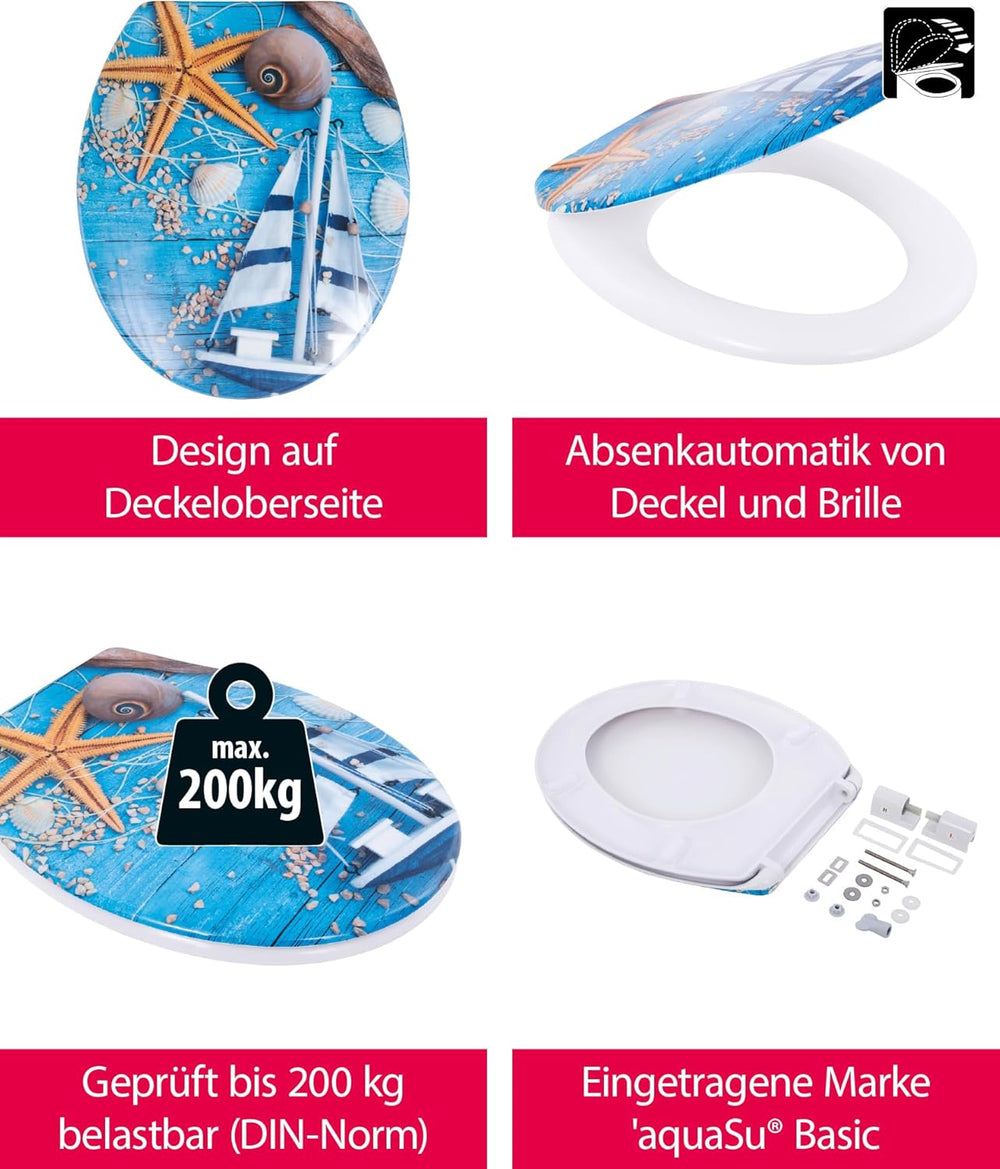 'aquaSu® Basic, WC-Sitz mit Motiv, Duroplast Toilettendeckel mit Absenkautomatik, Belastbar bis 200