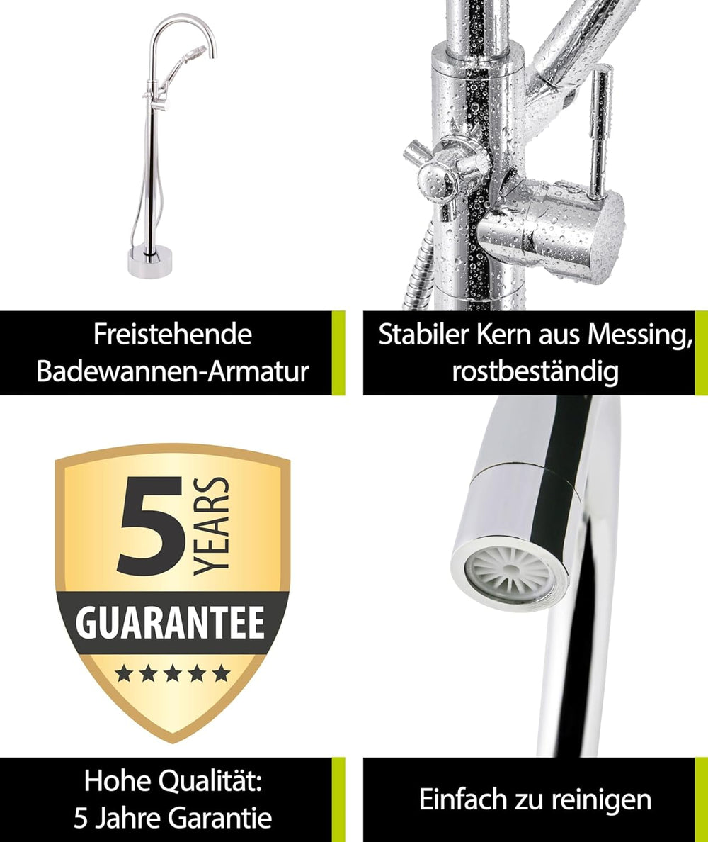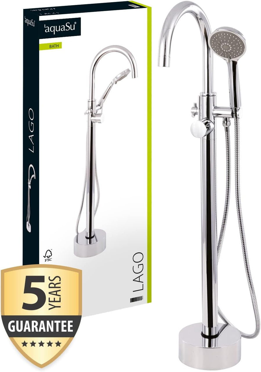'aquaSu® Badewannenarmatur freistehend Lago mit Wassersparmischdüse, Wasserhahn Wanne, Wannenarmatur