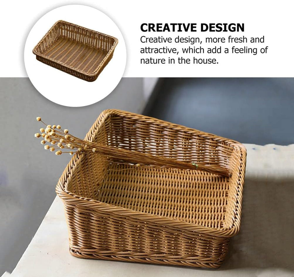 BESTonZON Geflochtener Aufbewahrungskorb Eckig Aufbewahrungskiste Lebensmittel Servierkorb Obstkorb