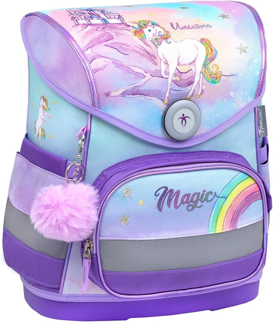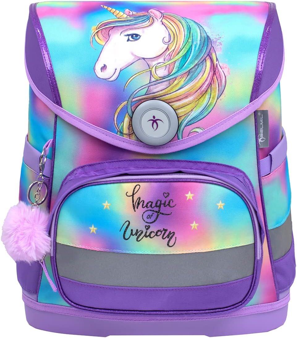 Belmil ergonomischer Schulranzen Set 4 -teilig für Mädchen 1-4 Klasse Grundschule/Brustgurt/Magnetve