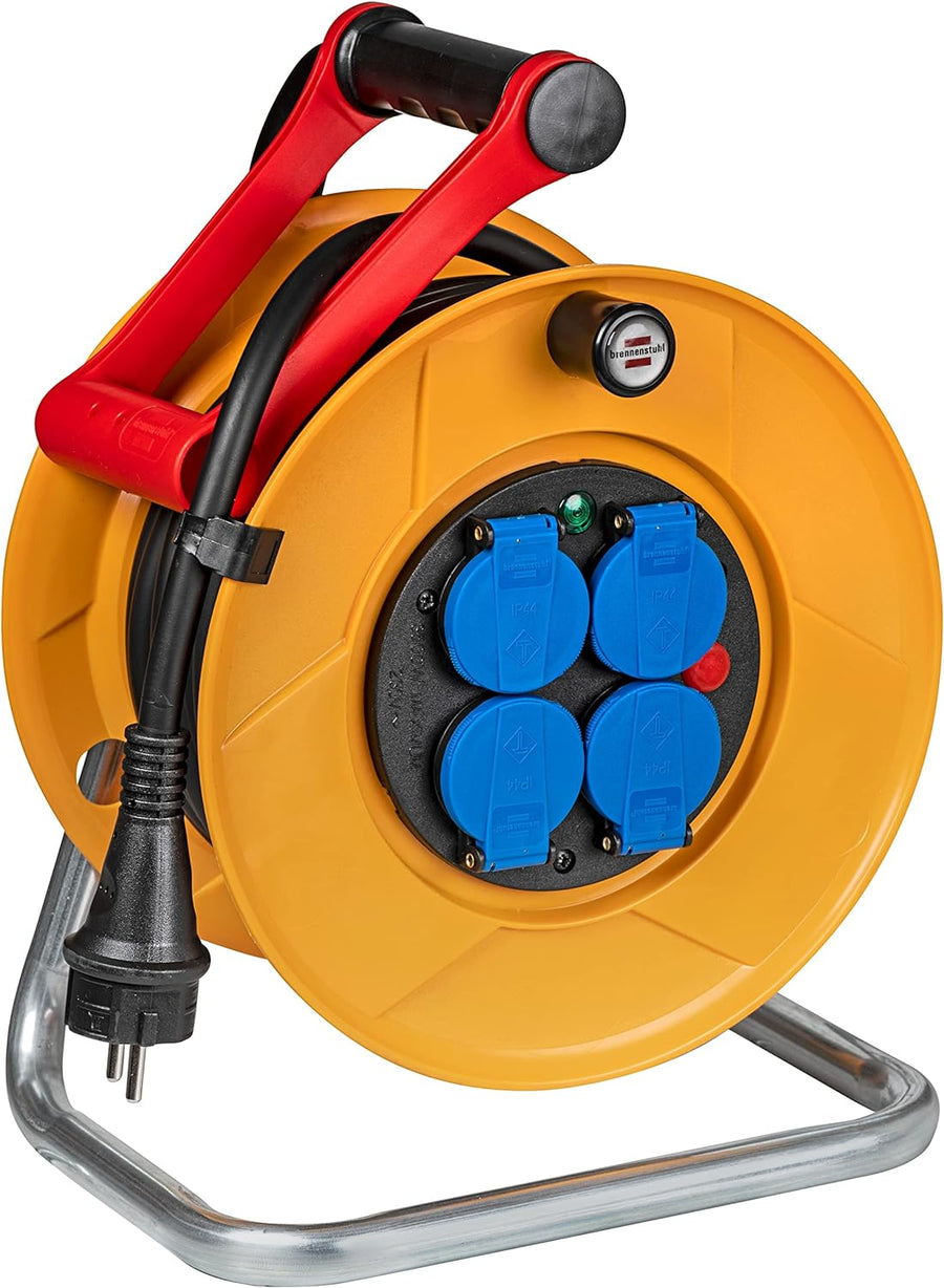 Brennenstuhl Camping-Kabeltrommel / CEE 230V Kabeltrommel 25m (H07RN-F 3G2,5 in orange, CEE-Winkelku