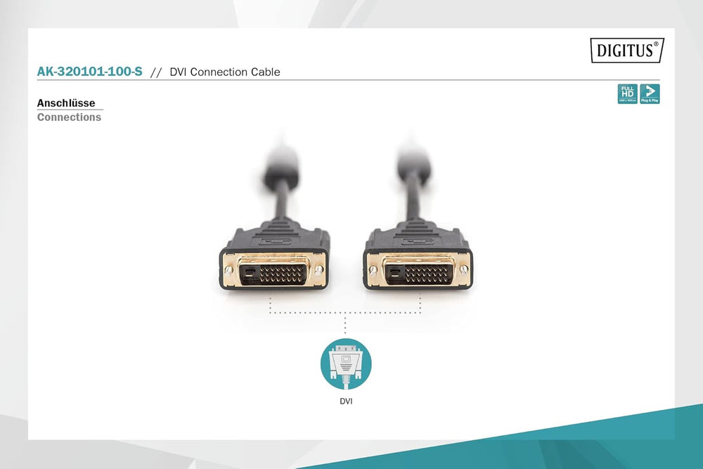 ASSMANN - DVI-Kabel - Dual Link - DVI-D (M) - DVI-D (M) - 10 m Full HD - DVI 24+1 - 2x Ferrit Filter
