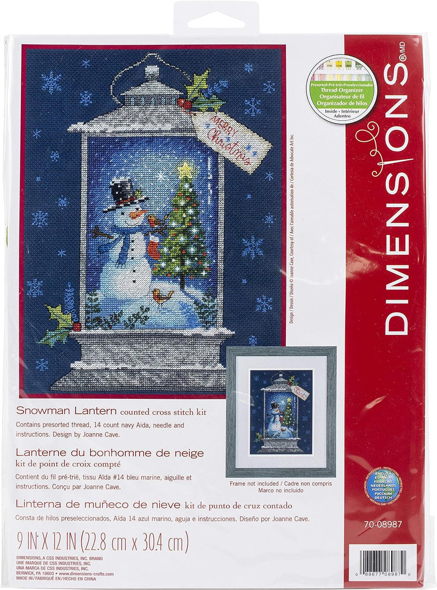 Dimensions 70-08987 Kreuzstich-Set, 22,9 x 30,5 cm, Schneemann-Laterne, 14 marineblaue Aida