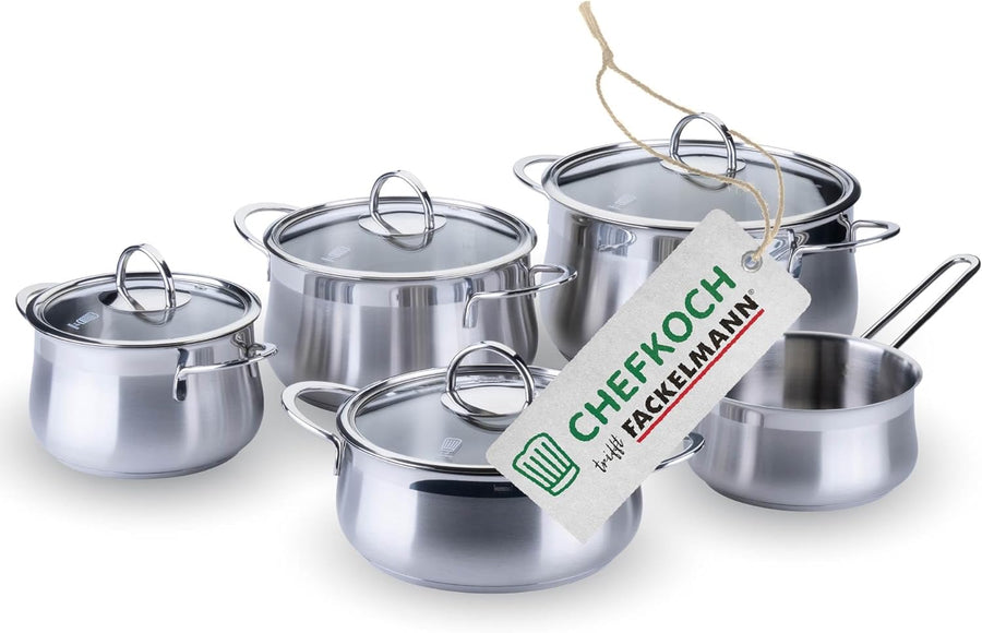 Chefkoch trifft Fackelmann Topfset 9-tlg. – Hochwertiges Edelstahl Kochgeschirr mit Glasdeckeln, Ind