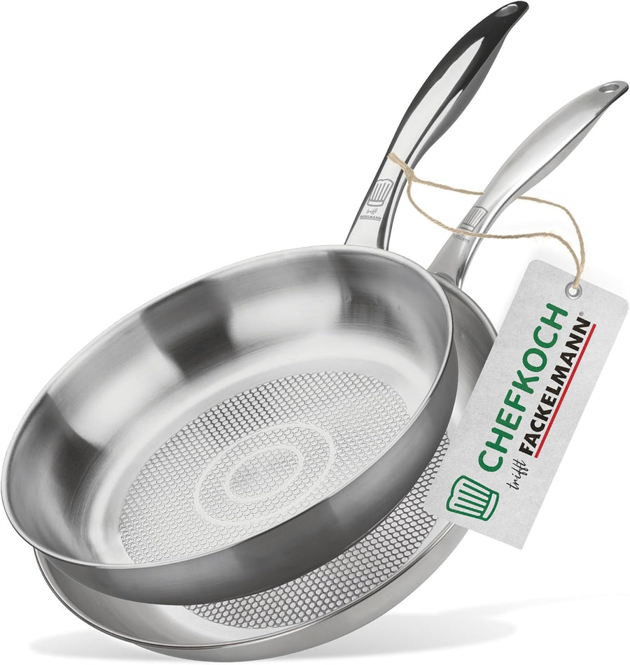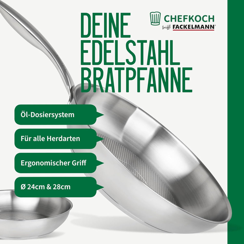 FACKELMANN Chefkoch Bratpfannen 2er-Set München aus Edelstahl Ø 28 & 24cm, Induktionsgeeignet & Spül