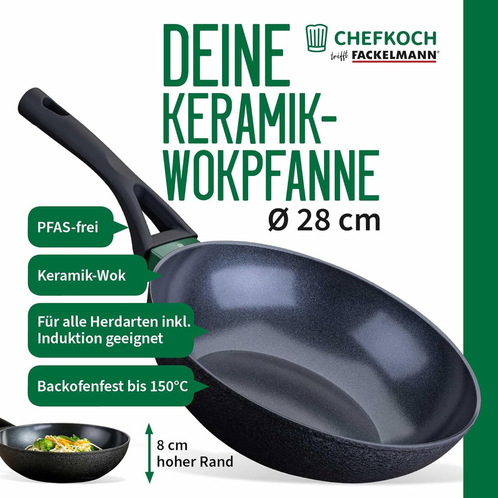 FACKELMANN Chefkoch trifft Keramik-Wokpfanne Hamburg Ø 28 cm – Hochwertige Antihaftbeschichtung, Erg