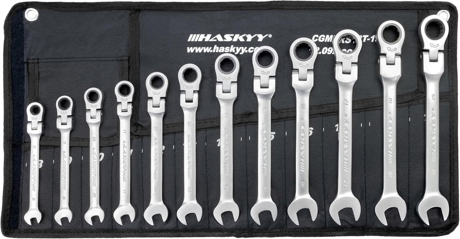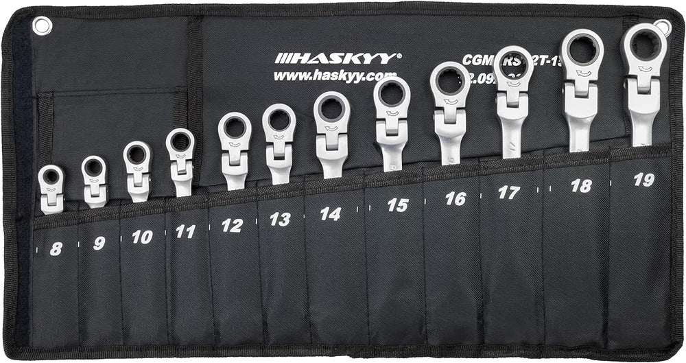 Haskyy 12tlg Ratschenschlüssel Set I Gelenk Ratschenschlüssel I 8-19mm