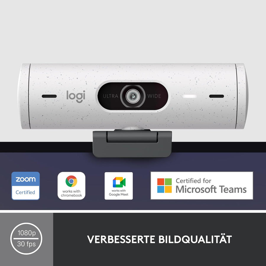 Logitech Brio 500 Full-HD-Webcam mit Auto-Lichtkorrektur, Zeigemodus, Doppelmikrofon + Rauschunterdr