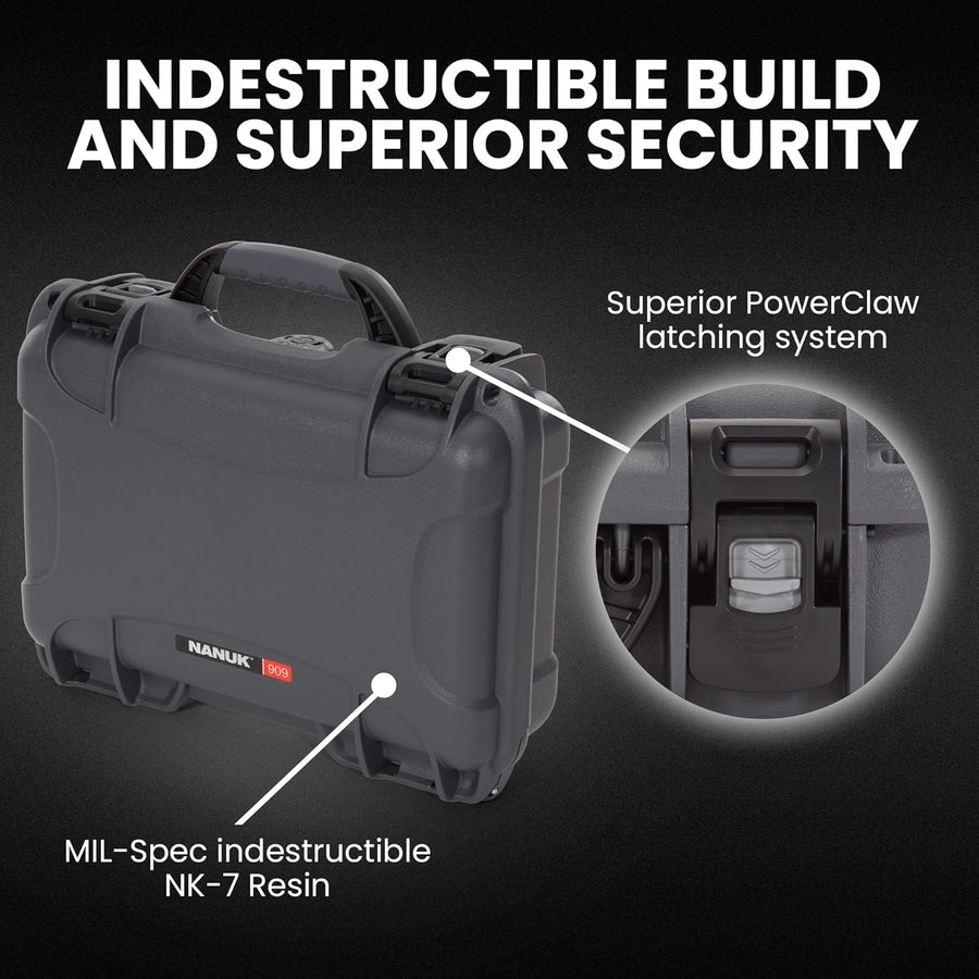 Nanuk 909 Wasserdichter Hartschalenkoffer Mit Plüschschaumeinlage - Graphit Grau (Graphite//Nature's