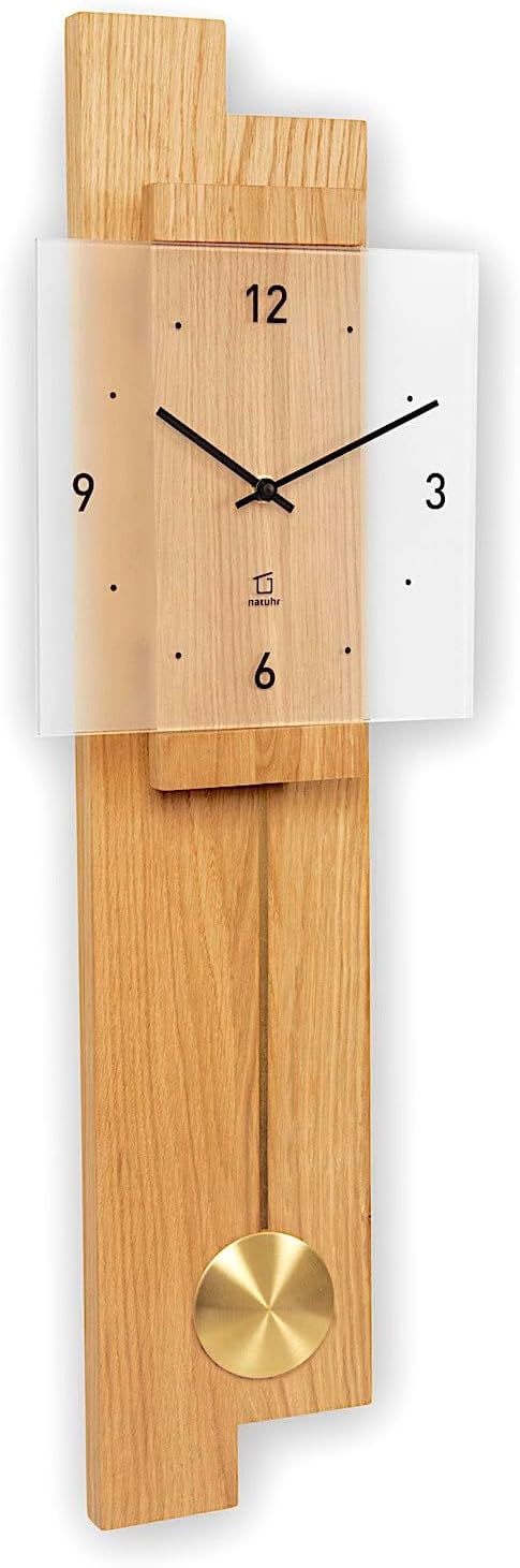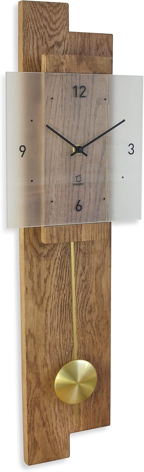 Natuhr Pendeluhr Holz Eichwald geräuscharm Massivholz Eiche Mineralglas U.T.S. Uhrwerk Made in Germa