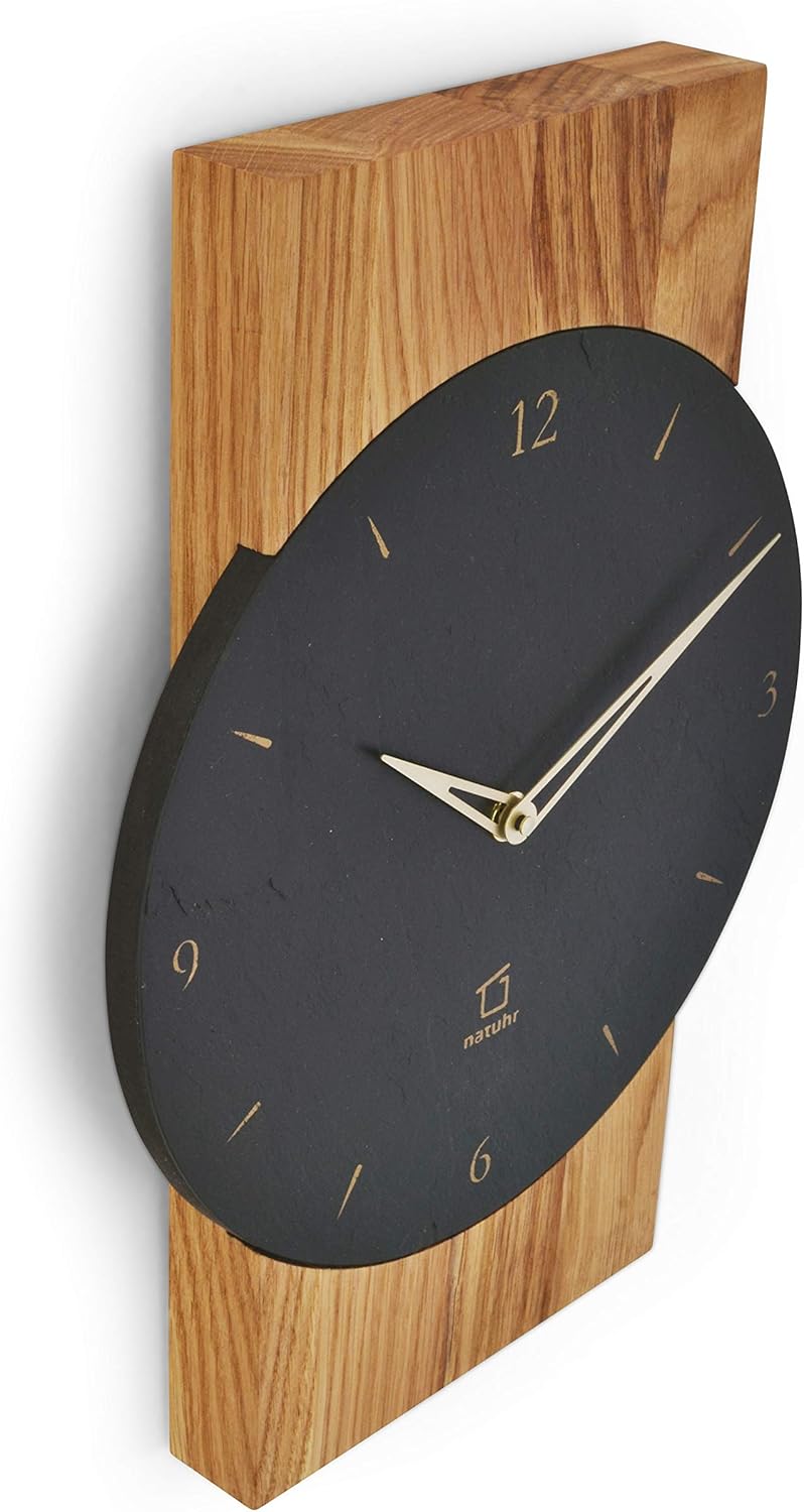 Natuhr Schiefer Wanduhr - Watzmann - Holz Eiche Stein geräuscharm Wohnzimmer Holzuhr Made in Germany